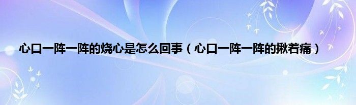 大家好,小问来为大家解答以上问题。心口一阵一阵的烧心是怎么回事,心口一阵一阵的揪着痛这个很多人还不知道,现在让我们一起来看看吧!