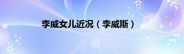 大家好,小问来为大家解答以上问题。李威女儿近况,李威斯这个很多人还不知道,现在让我们一起来看看吧!