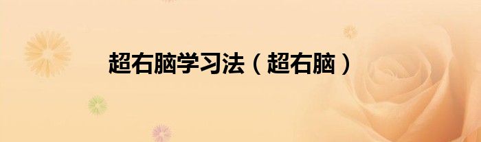 大家好,小问来为大家解答以上问题。超右脑学习法,超右脑这个很多人还不知道,现在让我们一起来看看吧!