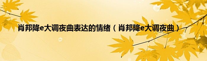 大家好,小问来为大家解答以上问题。肖邦降e大调夜曲表达的情绪,肖邦降e大调夜曲这个很多人还不知道,现在让我们一起来看看吧!