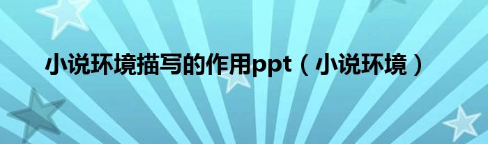 大家好,小问来为大家解答以上问题。小说环境描写的作用ppt,小说环境这个很多人还不知道,现在让我们一起来看看吧!