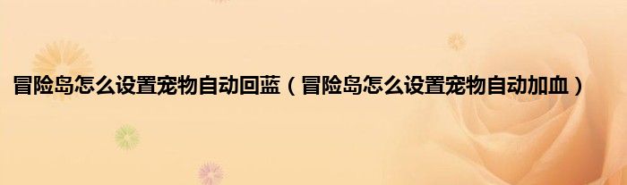 本文,冒险岛怎么设置宠物自动回蓝,冒险岛怎么设置宠物自动加血到此就分享完毕,希望对大家有所帮助。
