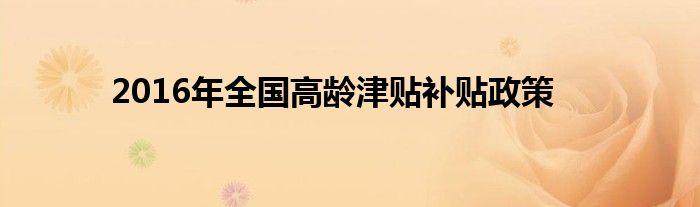 本文,2016年全国高龄津贴补贴政策到此就分享完毕,希望对大家有所帮助。