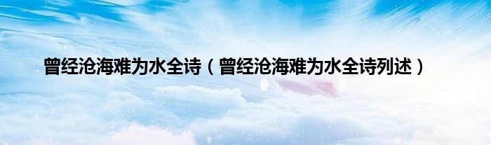 大家好,曾经沧海难为水全诗,曾经沧海难为水全诗列述很多人还不知道,现在让我们一起来看看吧!