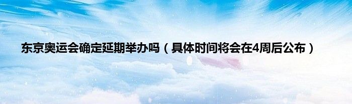 大家好,综合小编来为大家讲解下。东京奥运会确定延期举办吗,具体时间将会在4周后公布这个很多人还不知道,现在让我们一起来看看吧!