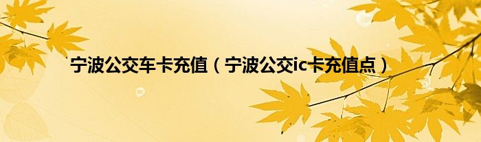 本文,宁波公交车卡充值,宁波公交ic卡充值点到此就分享完毕,希望对大家有所帮助。