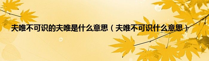 本文,夫唯不可识的夫唯是什么意思,夫唯不可识什么意思到此就分享完毕,希望对大家有所帮助。