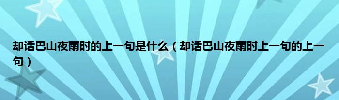 大家好,却话巴山夜雨时的上一句是什么,却话巴山夜雨时上一句的上一句很多人还不知道,现在让我们一起来看看吧!
