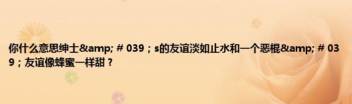 本文,你什么意思绅士& # 039;s的友谊淡如止水和一个恶棍& # 039;友谊像蜂蜜一样甜?到此就分享完毕,希望对大家有所帮助。