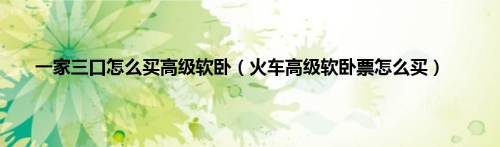 本文,一家三口怎么买高级软卧,火车高级软卧票怎么买到此就分享完毕,希望对大家有所帮助。