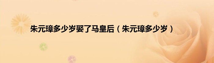大家好,朱元璋多少岁娶了马皇后,朱元璋多少岁很多人还不知道,现在让我们一起来看看吧!