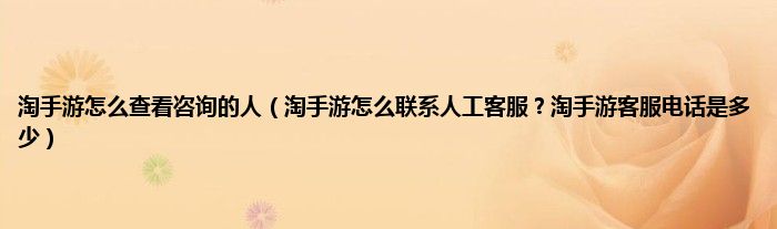 本文,淘手游怎么查看咨询的人,淘手游怎么联系人工客服?淘手游客服电话是多少到此就分享完毕,希望对大家有所帮助。