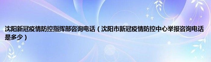 本文,沈阳新冠疫情防控指挥部咨询电话,沈阳市新冠疫情防控中心举报咨询电话是多少到此就分享完毕,希望对大家有所帮助。