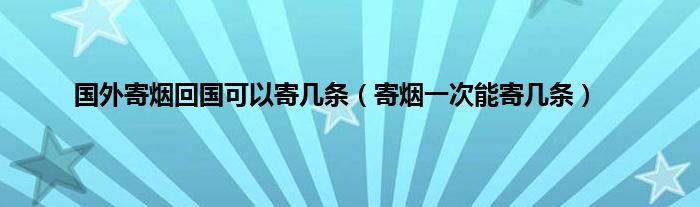 大家好,国外寄烟回国可以寄几条,寄烟一次能寄几条很多人还不知道,现在让我们一起来看看吧!