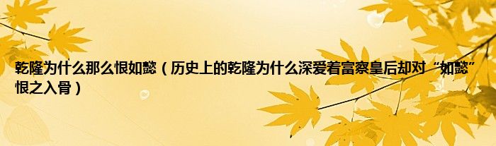 本文,乾隆为什么那么恨如懿,历史上的乾隆为什么深爱着富察皇后却对“如懿”恨之入骨到此就分享完毕,希望对大家有所帮助。