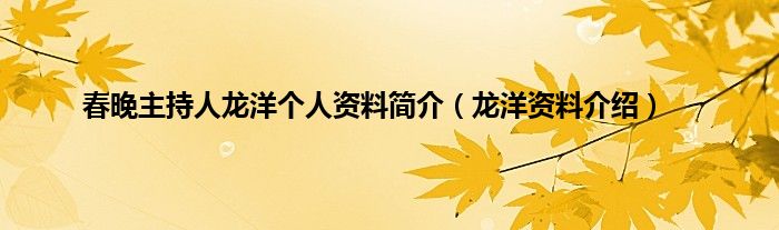 本文,春晚主持人龙洋个人资料简介,龙洋资料介绍到此就分享完毕,希望对大家有所帮助。