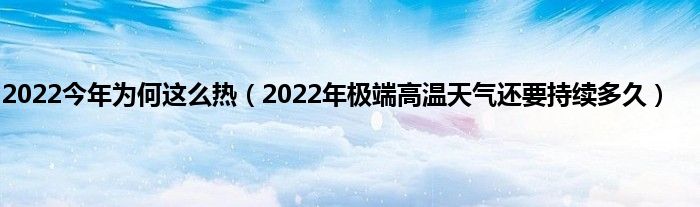 大家好,2022今年为何这么热,2022年极端高温天气还要持续多久很多人还不知道,现在让我们一起来看看吧!