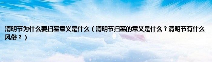 本文,清明节为什么要扫墓意义是什么,清明节扫墓的意义是什么?清明节有什么风俗?到此就分享完毕,希望对大家有所帮助。