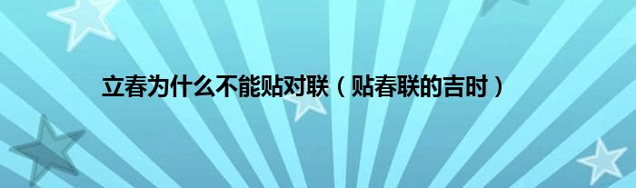 本文,立春为什么不能贴对联,贴春联的吉时到此就分享完毕,希望对大家有所帮助。