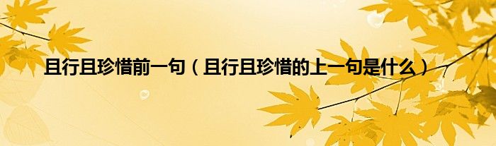 大家好,且行且珍惜前一句,且行且珍惜的上一句是什么很多人还不知道,现在让我们一起来看看吧!