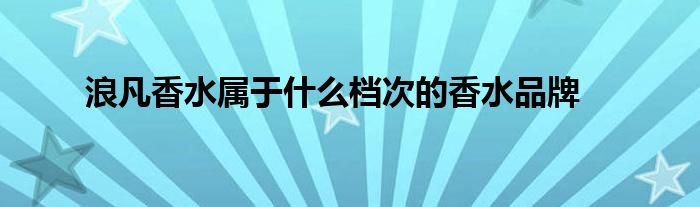 浪凡香水属于中档香水品牌。浪凡是法国高级时装品牌,浪凡香水是旗下一个产品系列,浪凡香水部门1925年开设,男香、女香都非常有自己的特色。