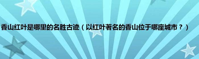 大家好,香山红叶是哪里的名胜古迹,以红叶著名的香山位于哪座城市?很多人还不知道,现在让我们一起来看看吧!