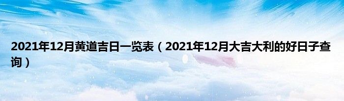 本文,2021年12月黄道吉日一览表,2021年12月大吉大利的好日子查询到此就分享完毕,希望对大家有所帮助。
