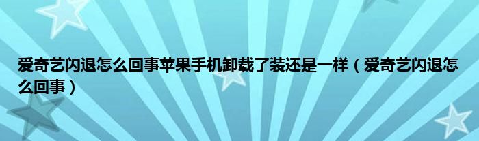 大家好,爱奇艺闪退怎么回事苹果手机卸载了装还是一样,爱奇艺闪退怎么回事很多人还不知道,现在让我们一起来看看吧!