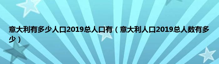 本文,意大利有多少人口2019总人口有,意大利人口2019总人数有多少到此就分享完毕,希望对大家有所帮助。