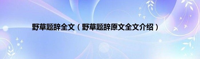 大家好,野草题辞全文,野草题辞原文全文介绍很多人还不知道,现在让我们一起来看看吧!